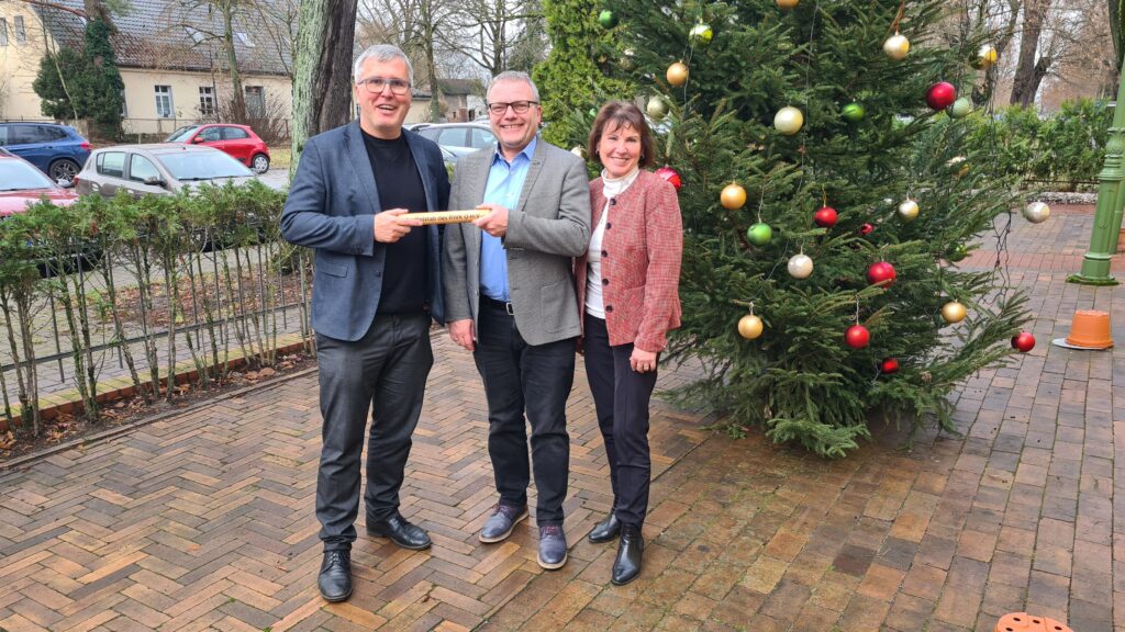 Es ist inzwischen gute Tradition, den jährlichen Wechsel des Vorsitzes der Wirtschaftsregion mit einer symbolischen Staffelstabübergabe zu verbinden. Alexander Laesicke, Bürgermeister von Oranienburg und Vorsitzender im Jahr 2025, übergab den Staffelstab im Rahmen des Treffens an seinen Hennigsdorfer Amtskollegen Thomas Günther, der die Funktion im Jahr 2026 übernehmen wird.